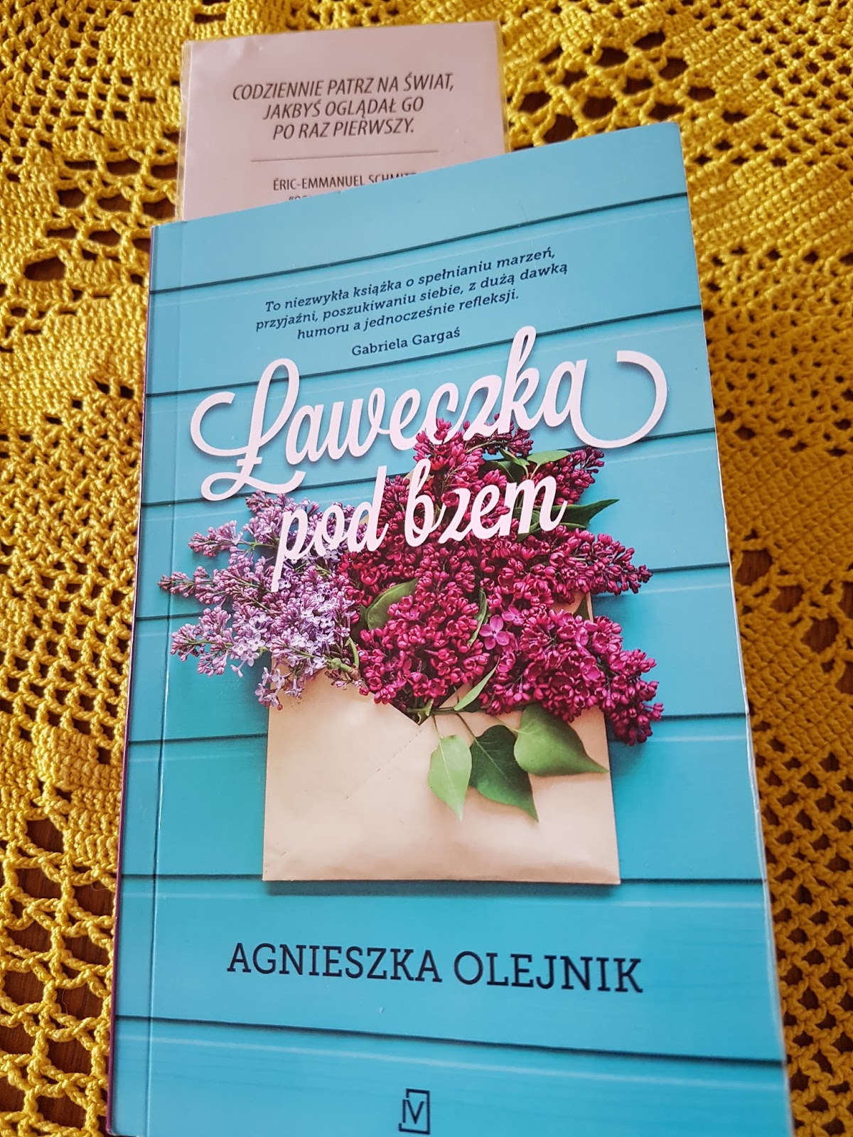 Przygotowując się do długiej tegorocznej majówki – oczywiście ze sporą ilością książek do przeczytania, postanowiłam rozpocząć ten piękny czas relaksu od „Ławeczki pod bzem” Agnieszki Olejnik.