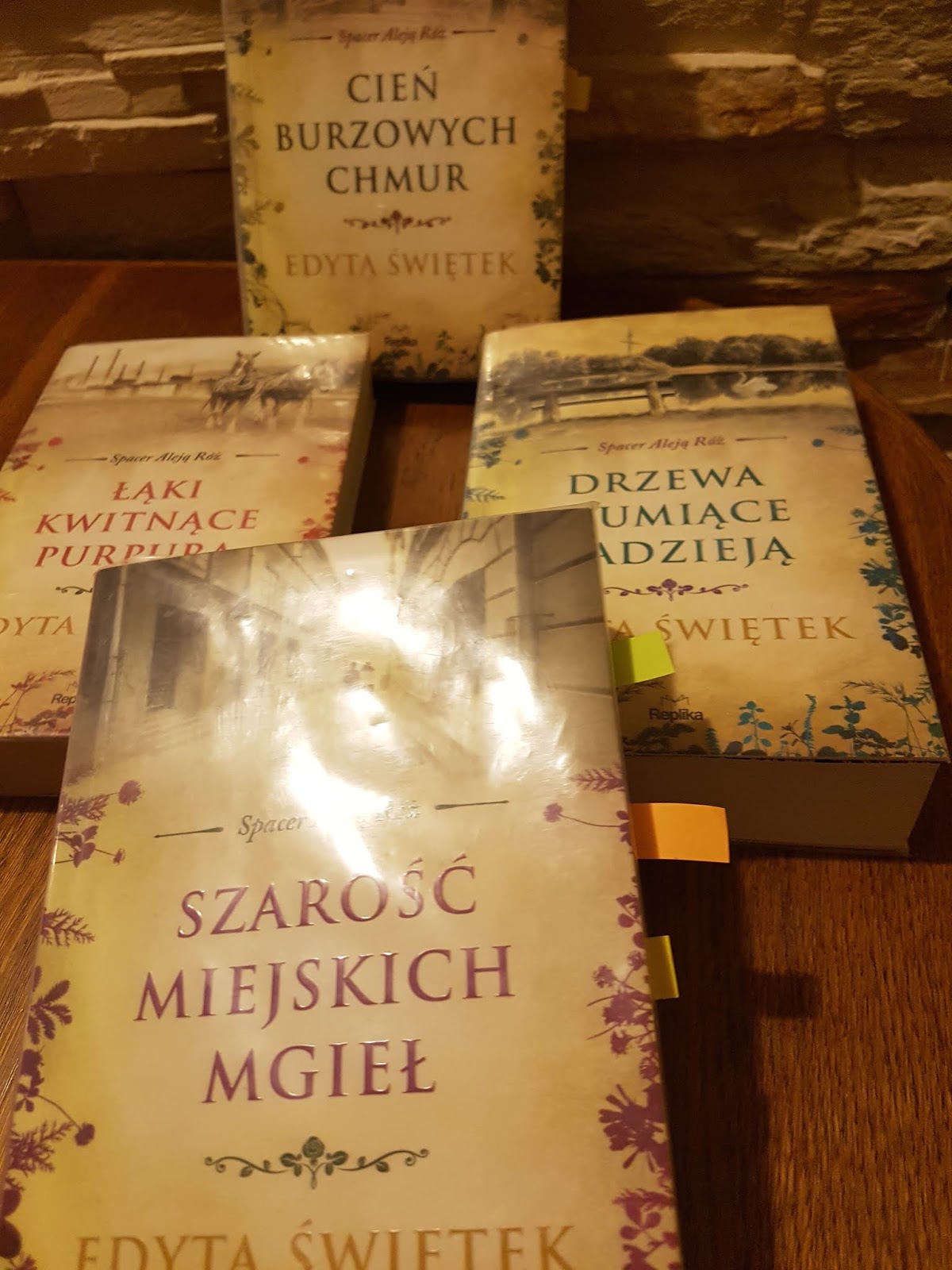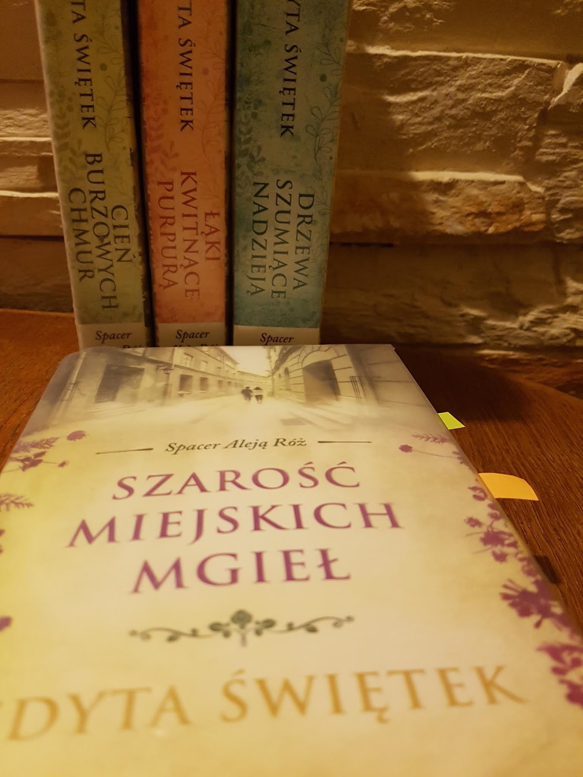 Historia rodziny Szymczaków urzekła mnie do tego stopnia, że z każdym przeczytanym tomem sagi Spacer Aleją Róż Edyty Świętek, chciałam jak najszybciej dowiedzieć się jak potoczą się dalsze losy bohaterów. „Szarość miejskich mgieł” zapowiada się równie ciekawie o czym napisano w krótkiej notatce z okładki książki: