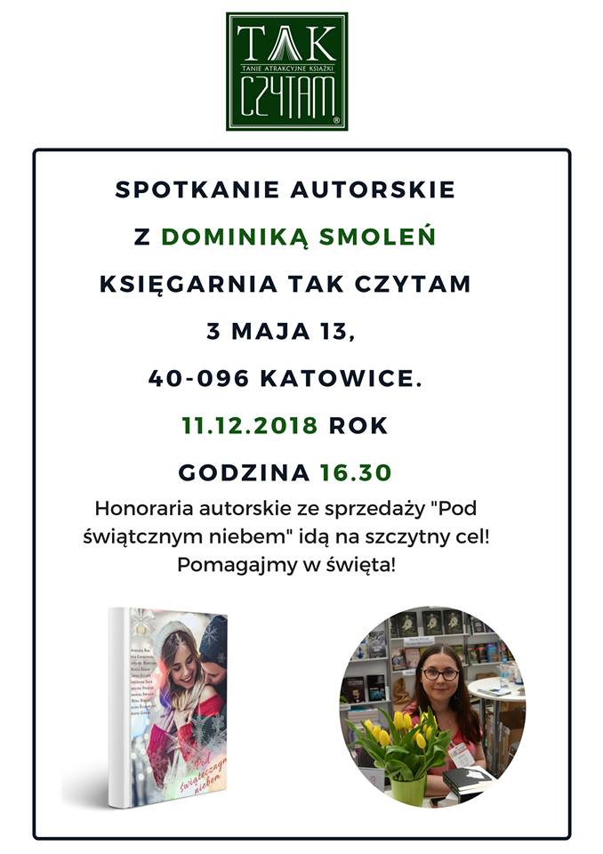 Więc tak – kiedy padł pomysł, że stworzymy antologię świąteczną i kiedy Wydawnictwo WasPos zebrało już ekipę autorek, powstała grupa na Facebooku (z racji tego, że jesteśmy z różnych zakątków Polski). Tam obgadałyśmy wszystko – od tytułu, okładki, opisu, patronów, daty premiery, recenzentów, aż po spotkania autorskie. Jednak samo pisanie opowiadań odbywało się w zaciszu domów każdej z nas i żadna nie miała wpływu na to, co która napisze – dlatego te opowiadania są takie wyjątkowe: bo to jest zupełny miks! Później opowiadania trafiły do Wydawcy i do redakcji. Ostatecznie mogę powiedzieć, że są CUDOWNE! Takiego efektu nikt się nie mógł spodziewać! Jestem dumna z tego projektu i z naszej inicjatywy, żeby całość honorarium autorskiego szło na cele charytatywne!