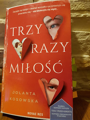 Dzisiaj chcę Wam polecić książkę „Trzy razy miłość” Jolanty Kosowskiej, która będzie miała swoją premierę 28 stycznia 2019 roku. Po książki pani Jolanty sięgam w ciemno, gdyż moja przygoda literacka z twórczością wspomnianej autorki trwa od dłuższego czasu i jak do tej pory nie zawiodłam się. Dlatego też bez wahania sięgnęłam po książkę, gdy przeczytałam notkę od wydawcy: