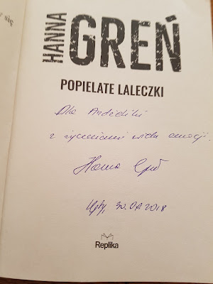 Wstyd się przyznać, ale książka przeleżała na półce kilka miesięcy i dopiero w ten weekend ją przeczytałam. Jest to pamiątka po spotkaniu autorskim z panią Hanną, które odbyło się w Kętach 30.09.2018 r., tuż po premierze „Popielatych laleczek”.