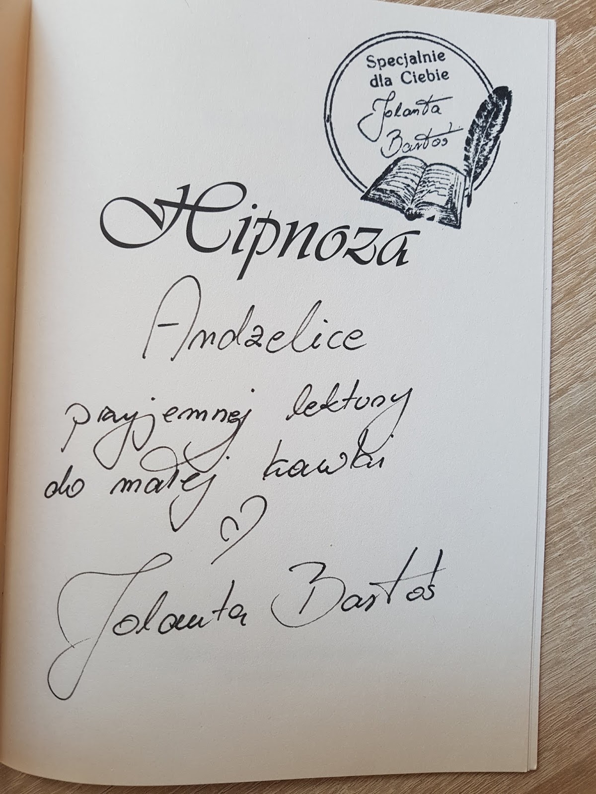 Jest to kolejne moje spotkanie z twórczością pani Joli. Jak zwykle jest zbrodnia, nie widać motywu zbrodni, ale jest trup. Jestem pod wrażeniem, jak autorka wybrnęła z sytuacji. Temat przewodni sugerowałby dłuższe dzieło, co najmniej 200 stronicowe. Ale mam przed sobą krótkie opowiadanie, które wywołuje w czytelniku strach. Z uwagi na krótką formę literacką nie będę rozwodzić się nad fabułą, bo zabiorę wam przyjemność z czytania. Jednak czuję się zobowiązana napisać, że „Hipnoza” ukazuje pracę psychiatry od kuchni. Metody jakimi posługuje się lekarz mają doprowadzić do wyleczenia pacjenta a zarazem poznania przyczyn jego stanu. Jednak co należy zrobić z wiedzą, którą posiądzie lekarz w trakcie terapii? Czy może zachować dla siebie informacje przekazane przez pacjenta, wiadomo tajemnica lekarska? Czy też przekazać je odpowiednim służbom?