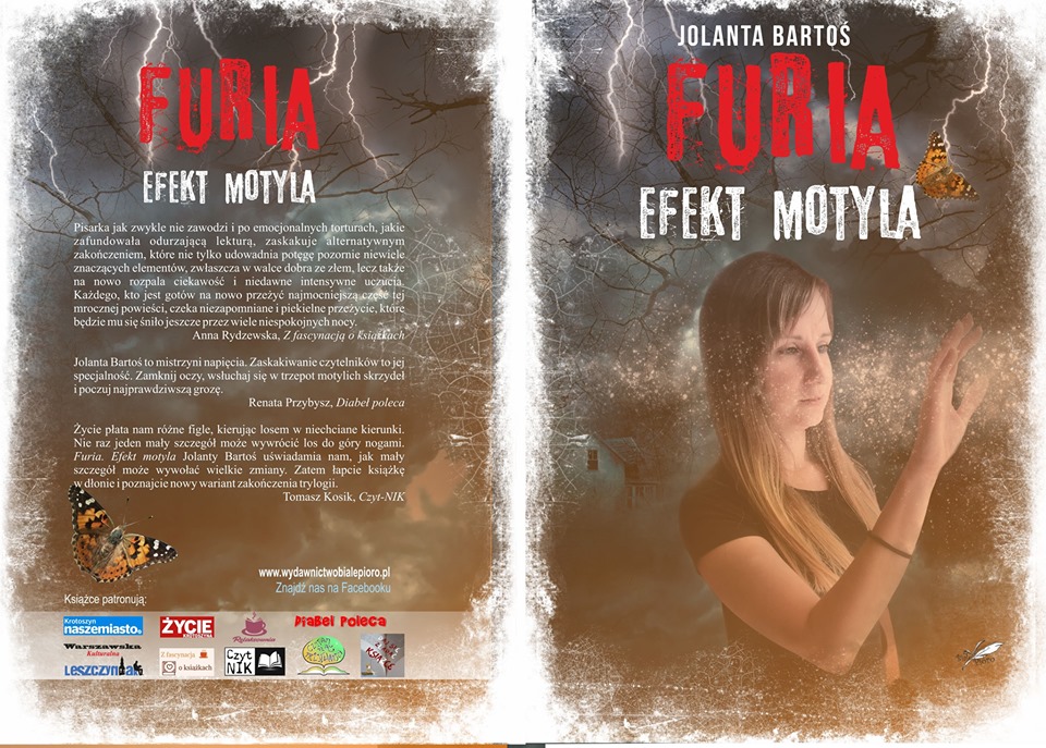 Miło mi poinformować, że blog Czytam dla przyjemności objął patronatem najnowsze książki pani Jolanty Bartoś. „Furia” to książka, która posiada alternatywne zakończenie jakim jest „Furia efekt motyla”.