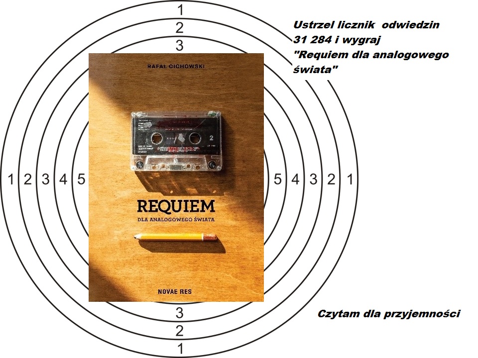 Dzisiaj mam dla was propozycję strzelecką. Sfotografuj licznik odwiedzin (może być screen) Czytam dla przyjemności, który wskaże liczbę 31 284. W nagrodę otrzymasz książkę „Requiem dla analogowego świata” Rafał Cichowski, recenzja znajduje się na blogu.