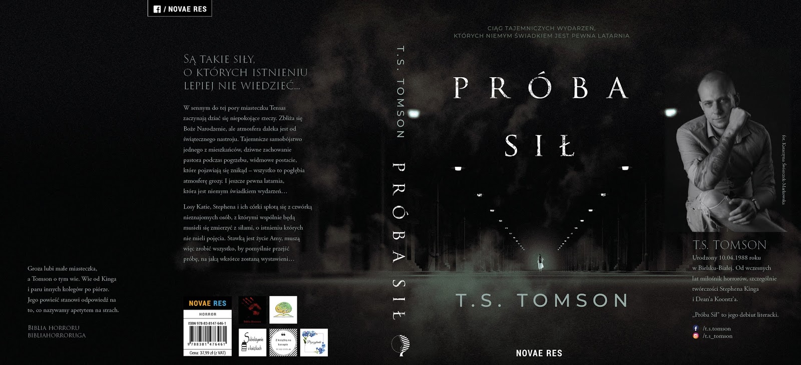 Otóż książka „Próba sił” T. S. Tomsona spełni wspomniane doznania czytelnicze. Już mroczna okładka zapowiada, że będzie się działo dużo pod osłoną nocy, gdy wszystkie lęki jakie skrywa człowiek przybierają na sile. Mówią, że strach ma wielkie oczy i jest to prawda, ten sam dźwięk w nocy nabiera innego charakteru niż za dnia. „Próba sił” jest debiutem, który swoją premierę będzie miał 6 grudnia 2019 r., a patronem medialnym jest Czytam dla przyjemności.
