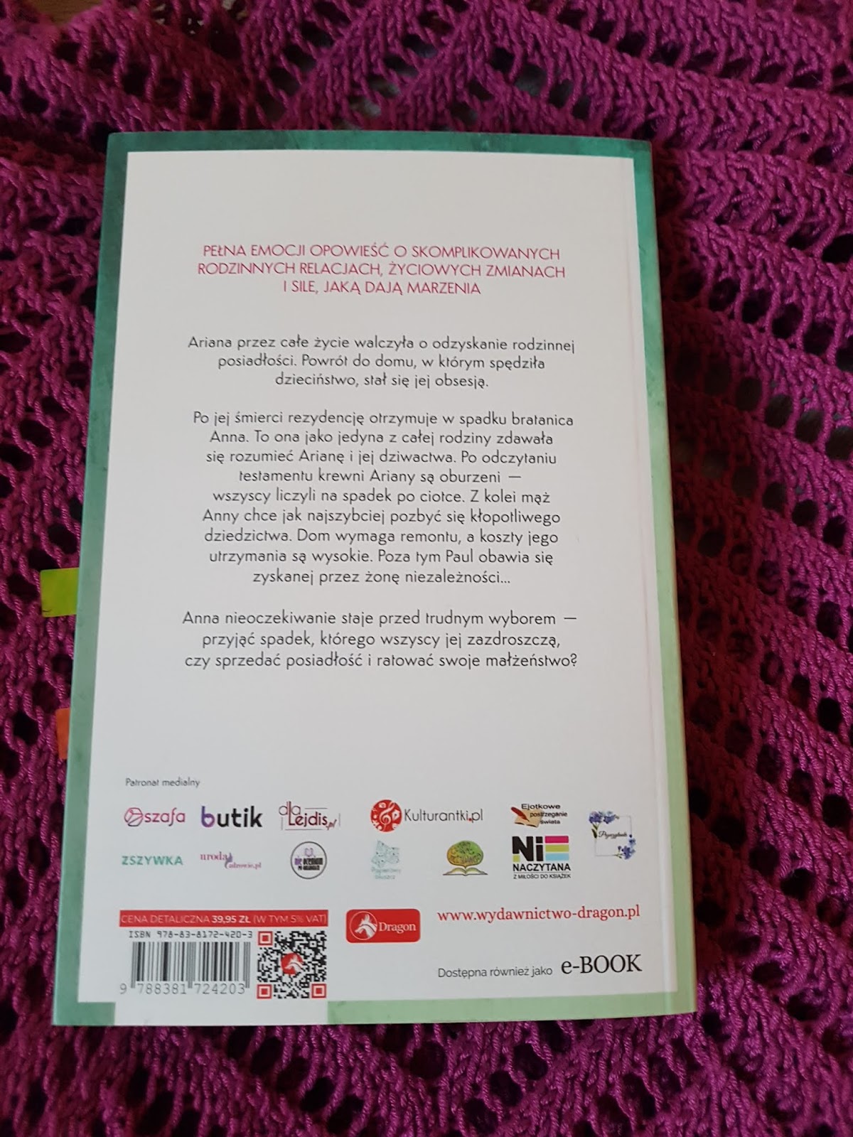 Każdy z nas marzy o spadku, który nas wzbogaci materialnie i podniesie prestiż wśród rodziny i znajomych. Ale czy taki prezent to dar od losu? Czy może spadek będzie początkiem waśni w rodzinie i kłótni? Może spadek to przysłowiowa puszka Pandory, która po otwarciu ujawni najgorsze cechy charakteru wśród członków rodziny? No cóż, sama się o tym nie przekonałam, bo nie otrzymałam spadku, ale doświadczyła tego Anna, główna bohaterka „Testamentu Ariany”. Kobieta musi sama podjąć wiele trudnych decyzji, ponieważ na wsparcie rodziny nie może liczyć. Jak potoczą się losy Anny i jej najbliższych, to już musicie sami sprawdzić czytając książkę.