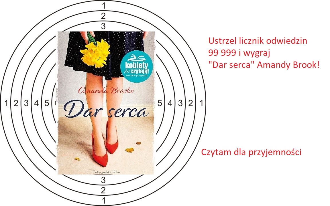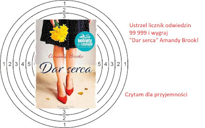 Dzisiaj mam dla was propozycję strzelecką. Sfotografuj licznik odwiedzin (może być screen) Czytam dla przyjemności, który wskaże liczbę 99 999. W nagrodę otrzymasz książkę „Dar serca ” Amandy Brook, recenzja znajduje się na blogu.