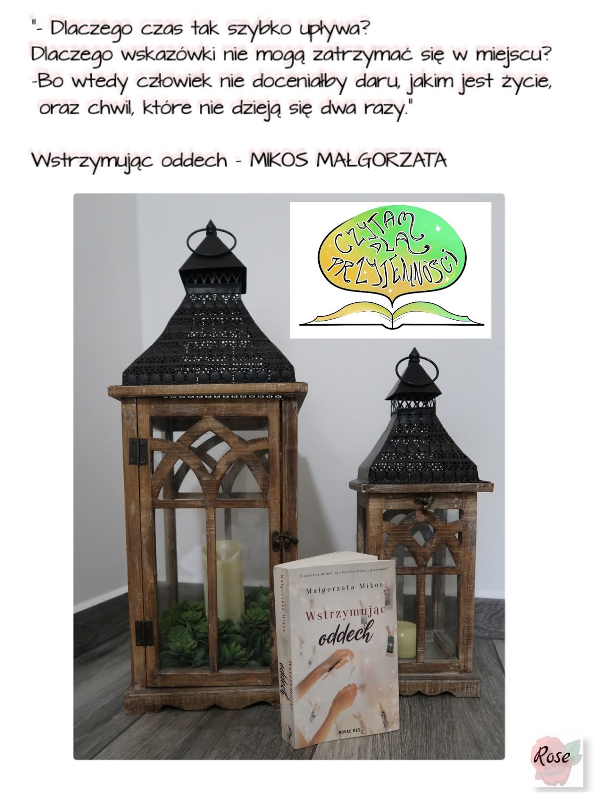 Czy wierzycie w intuicję? Słuchacie tego głosu czy zupełnie go ignorujecie? Czytałam i momentami wstrzymywałam oddech, lub szukałam chusteczek. Powieść „Wstrzymując oddech” Małgorzaty Mikos naładowana jest przeróżnymi emocjami. Historia na skraju dwóch światów, życia w szczęśliwej miłości i rozpaczy po utracie swojej drugiej połówki.