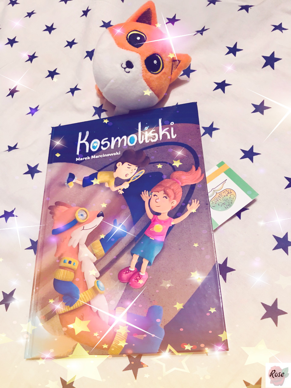 Kosmoliski i dwóch małych ciekawych wiedzy podróżników unoszą się ze swoich łóżeczek nie tylko na księżyc, ale nawet w stronę gorącego słońca, unikając po drodze zderzeń z okruchami skalnymi. Jest to historia dla chłopca i dziewczynki ponieważ postacie lisków jak i dzieci są obu płci (jeden lisek określony jako niebieski i drugi jako różowy odpowiadają chłopcu i dziewczynce).