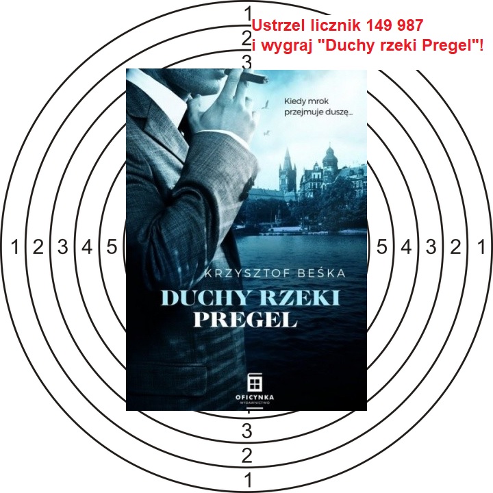 Dzisiaj mam dla was propozycję strzelecką. Sfotografuj licznik odwiedzin (może być screen) Czytam dla przyjemności, który wskaże liczbę 149 987. W nagrodę otrzymasz książkę „Duchy rzeki Pregel ” Krzysztofa Beśki, recenzja znajduje się na blogu.
