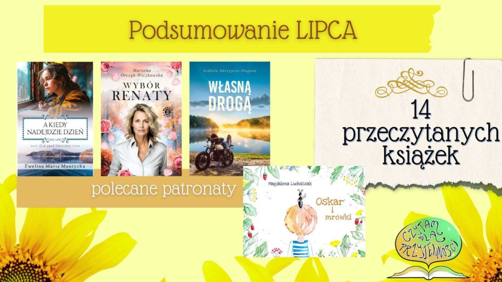 Cóż to był za szalony miesiąc! W niektórych momentach czułyśmy, że książkowe szaleństwo nas ogarnęło. Jedne książki czytałyśmy, inne wysyłałyśmy w Polskę, a tu za chwilę okazywało się, że book toury kończą się. Takiego wysypu zakończonych bt nie miałyśmy dotąd. A jeszcze kilka zostało do opracowania i o nich poczytacie w sierpniu, bo miesiąca brakło nam by o wszystkim wam opowiedzieć i pokazać. Do tego jeszcze chciałyśmy zaprezentować wam nasze piękne patronaty.
