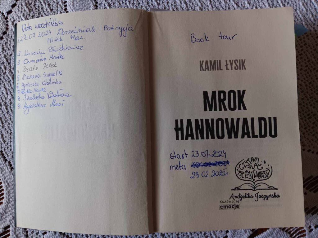 Książka “Mrok Hannowaldu ” Kamila Łysika zakończyła swoją podróż po Polsce. Podczas podróży zebrała opinie i oceny, których średnia w book tour wyniosła 5,22. Uważamy, że powieść dobrze wypadła. Czytelniczki zwróciły uwagę na mocne i słabe strony powieści. Są to cenne wskazówki dla autora.
