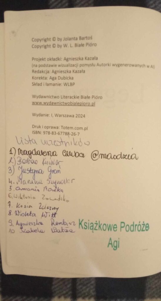 Ostatnia osoba z listy jest zobowiązana do odesłania książki do autorki oraz zrobienia pamiątkowych zdjęć do podsumowania.