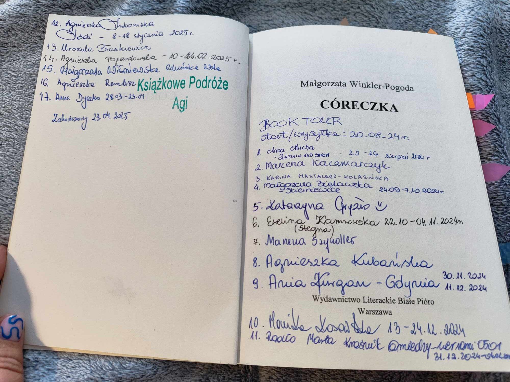 Ostatnia osoba z listy jest zobowiązana do odesłania książki do autorki oraz zrobienia pamiątkowych zdjęć do podsumowania.