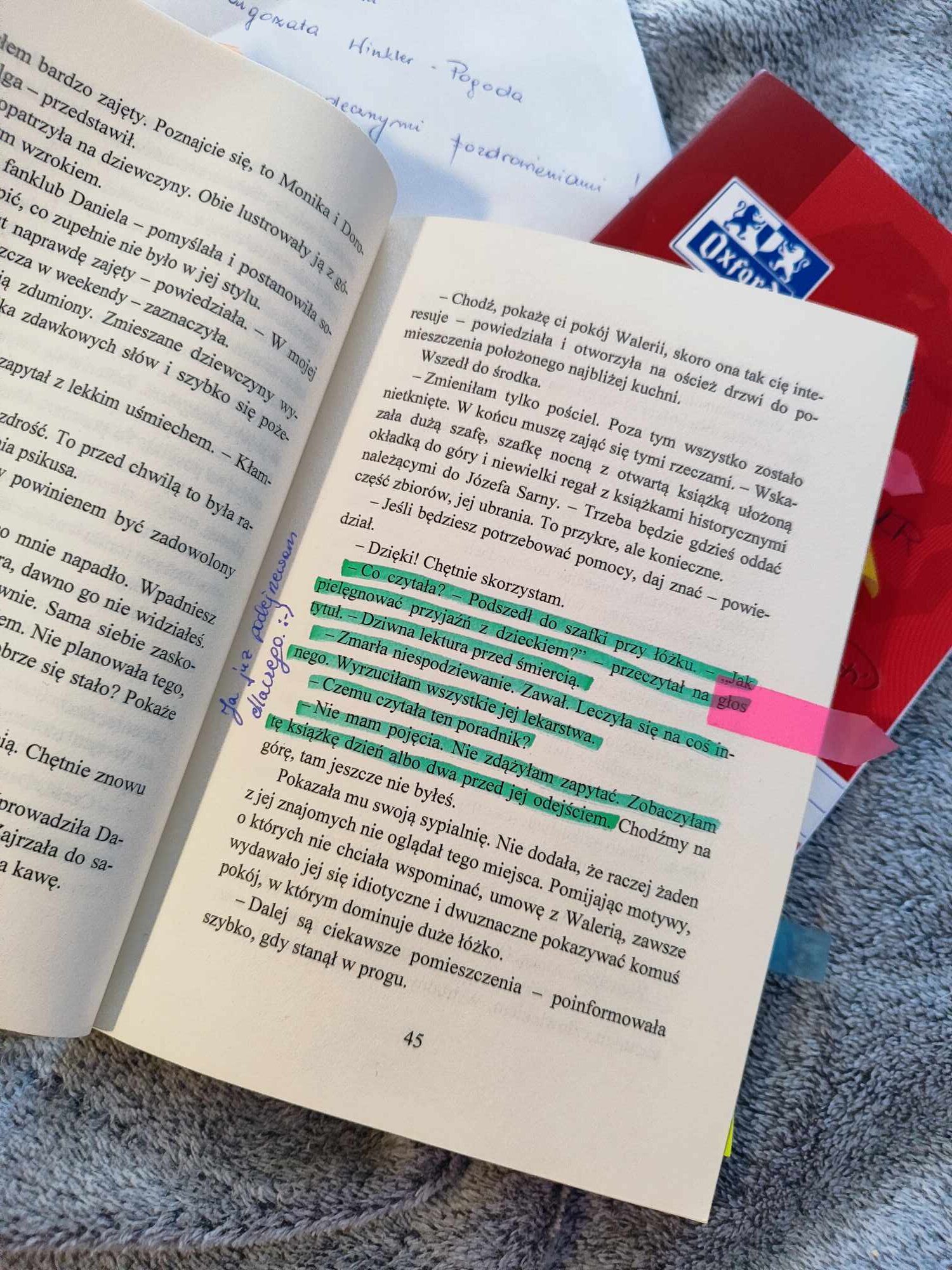 Książka wróciła z wieloma zaznaczeniami.