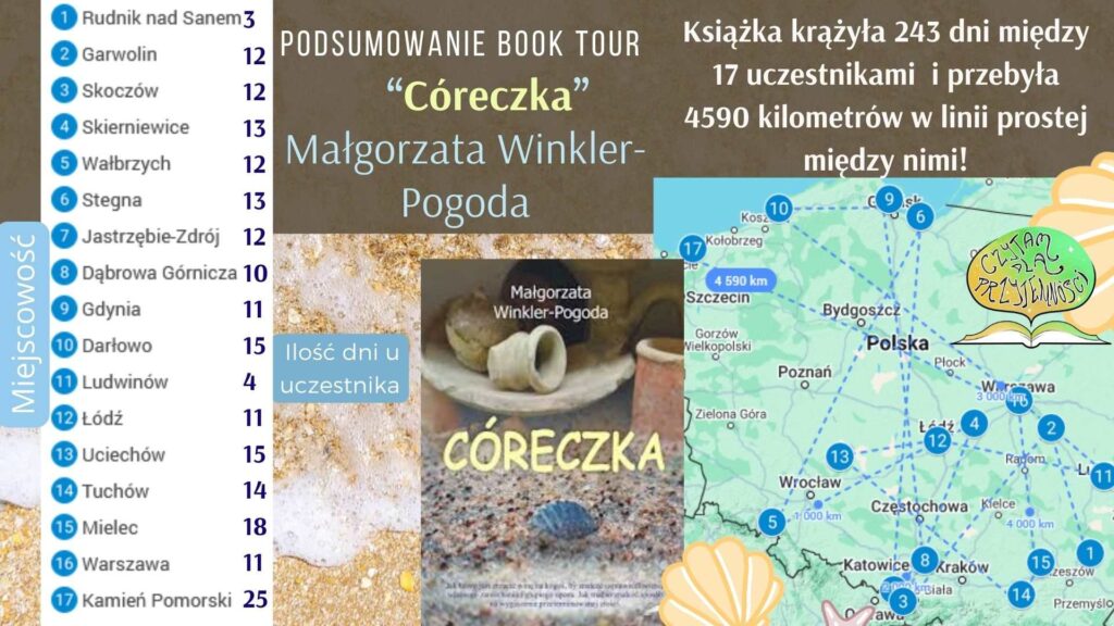 Książka “Córeczka” Małgorzaty Winkler – Pogody zakończyła swoją podróż po Polsce. Podczas podróży zebrała opinie i oceny, których średnia w book tour wyniosła 7,31. Uważamy, że powieść bardzo dobrze wypadła, a każda z uczestniczek znalazła coś dla siebie.