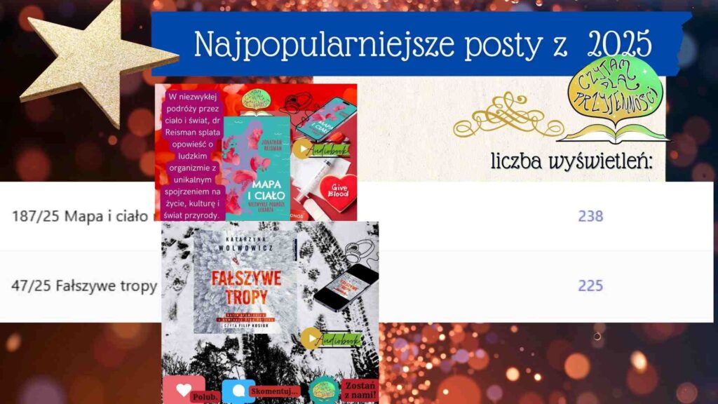 W tym roku mniej książek patronackich, ale za to więcej przeczytanych, a z całą pewnością więcej przesłuchanych, bowiem audiobooki u nas królowały. Jak widać współpracujemy z autorkami, z którymi już dobrze się znamy, ale odkrywamy również nowych autorów. Udało się rozpocząć 33 book toury i 9 z nich zakończyć. Oczywiście z roku 2024 również kończyły swój bieg w tym roku, ale tego już nie liczymy. Na blogu opisałyśmy 216 książek, ale postów stworzyłyśmy 305. Udało się opublikować post nr 2000.
