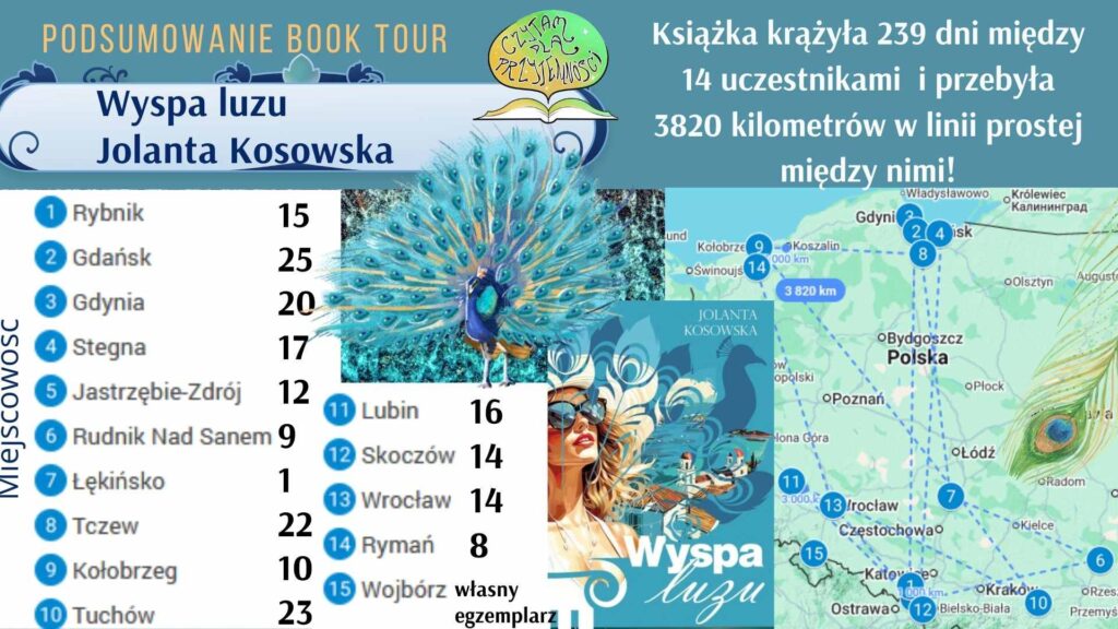 Książka przemierzyła 3820 km, na co potrzebowała 239 dni. Podróż rozpoczęła się 04.04.2025 a zakończyła 14.12.2025. W tej inicjatywie czytelniczej wzięło udział 15 osób.