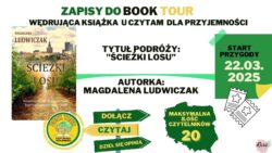 Regulamin  1. Book tour jest organizowany dla osób mieszkających na terenie Polski.2. W book tour mogą wziąć udział czytelnicy i blogerzy, którzy zamieszczają swoją opinię na Lubimy czytać.3. Prosimy by zdjęcie książki i link do recenzji został wysłany za pomocą messenger w grupie  BT Ścieżki losu oraz zamieszczenie w recenzji informacji, że book tour  jest organizowany przez Czytam dla przyjemności i Autorkę.4. Warunkiem uczestnictwa w Book Tourze  jest polubienie naszego fanpage na Facebooku.5. Zgłoszenia dokonywane są pod tym postem oraz na Facebooku Book… Czytaj dalej