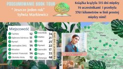 Podsumowanie Książka “Jeszcze jeden rok” Sylwii Markiewicz zakończyła swoją podróż po Polsce. Teraz zostało nam powspominać opinie oraz obejrzeć zdjęcia, które nadesłały czytelniczki. A my z przyjemnością czytałyśmy wasze opinie i wyszukiwałyśmy cytatów do podsumowania. Bardzo nas cieszą liczne komentarze w książce oraz wpisy w pamiątkowym zeszycie. Książka wraz z zeszytem powróciła do autorki Sylwii Markiewicz. Książka przemierzyła 3 761 km, na co potrzebowała 315 dni…. Czytaj dalej