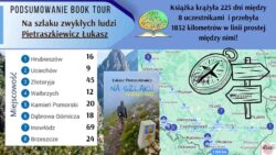 Podsumowanie Książka „Na szlaku zwykłych ludzi” Łukasza Pietraszkiewicza przemierzyła Polskę wzdłuż i wszerz, o czym możecie przekonać się spoglądając na powyższą grafikę. Jest to opowieść o ludzkich losach, które nie zawsze są łatwe i przyjemne. Wiele osób, które przemierzają szlak pielgrzymkowy Camino de Santiago, mierzą się z własnymi słabościami i starają się uporządkować myśli, emocje oraz doświadczenia życiowe, z którymi przyszło się im mierzyć… Czytaj dalej